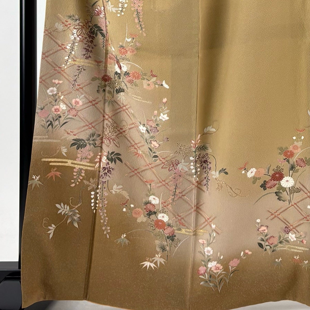 【美品】 訪問着 身丈158cm 裄丈62.5cm S 薄物 霞 有職文様 黄土色 正絹 優品