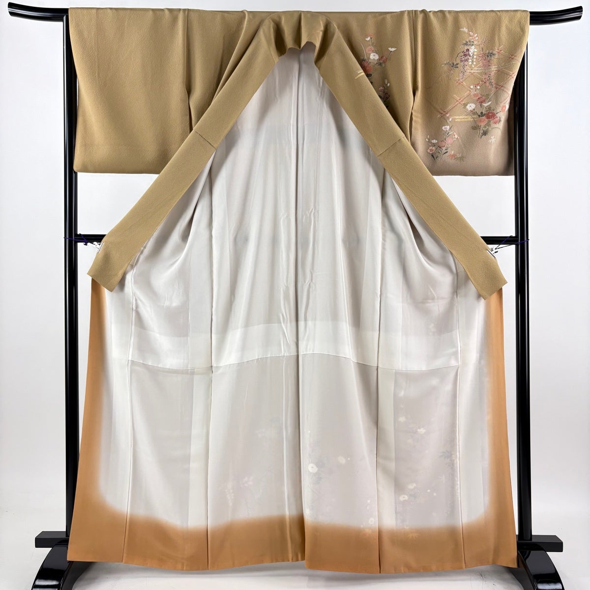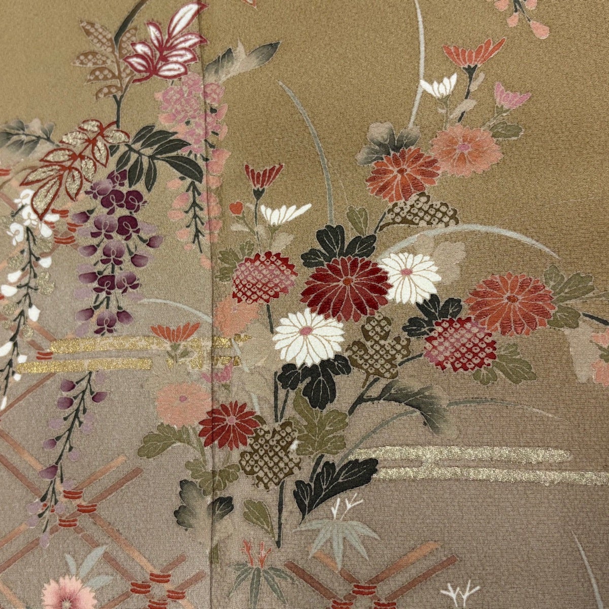 訪問着 身丈165cm 裄丈66cm M 袷 草花 ヱ霞 金彩 ぼかし 薄茶色 正絹 優品