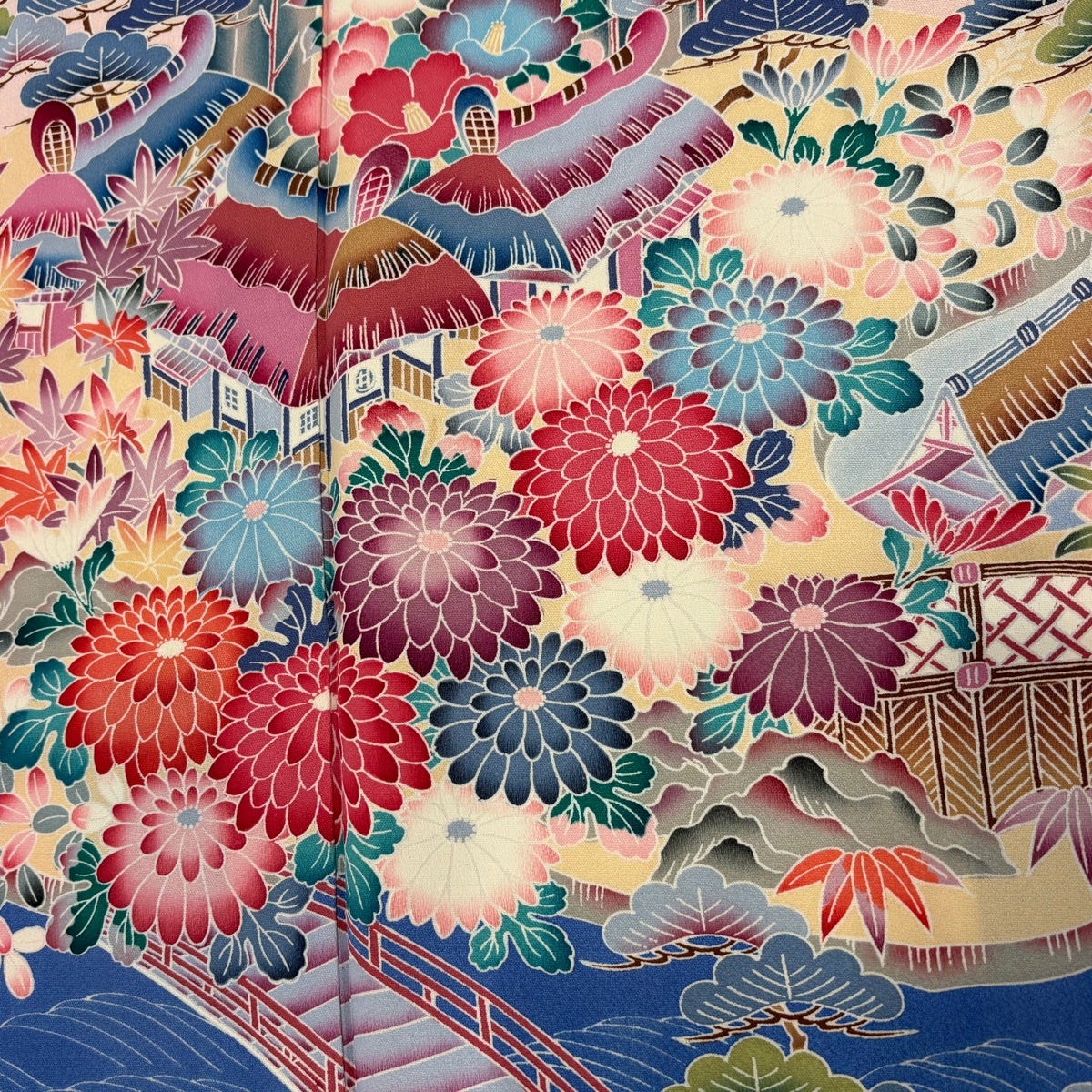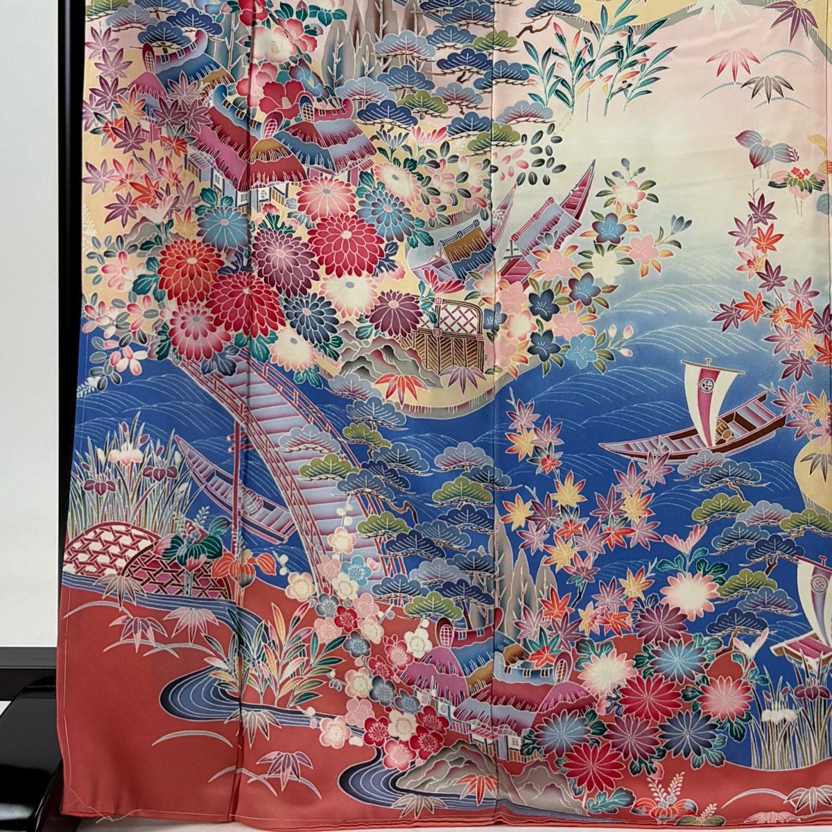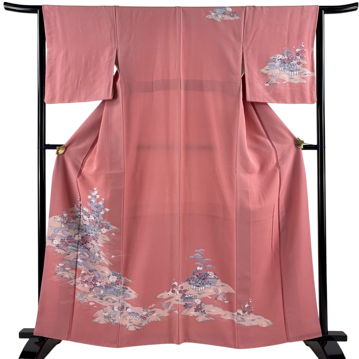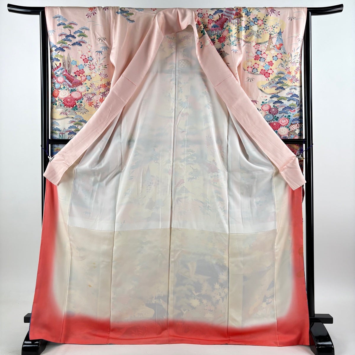 振袖 身丈171cm 裄丈64.5cm M 袷 風景 松竹梅 薄ピンク 正絹 優品