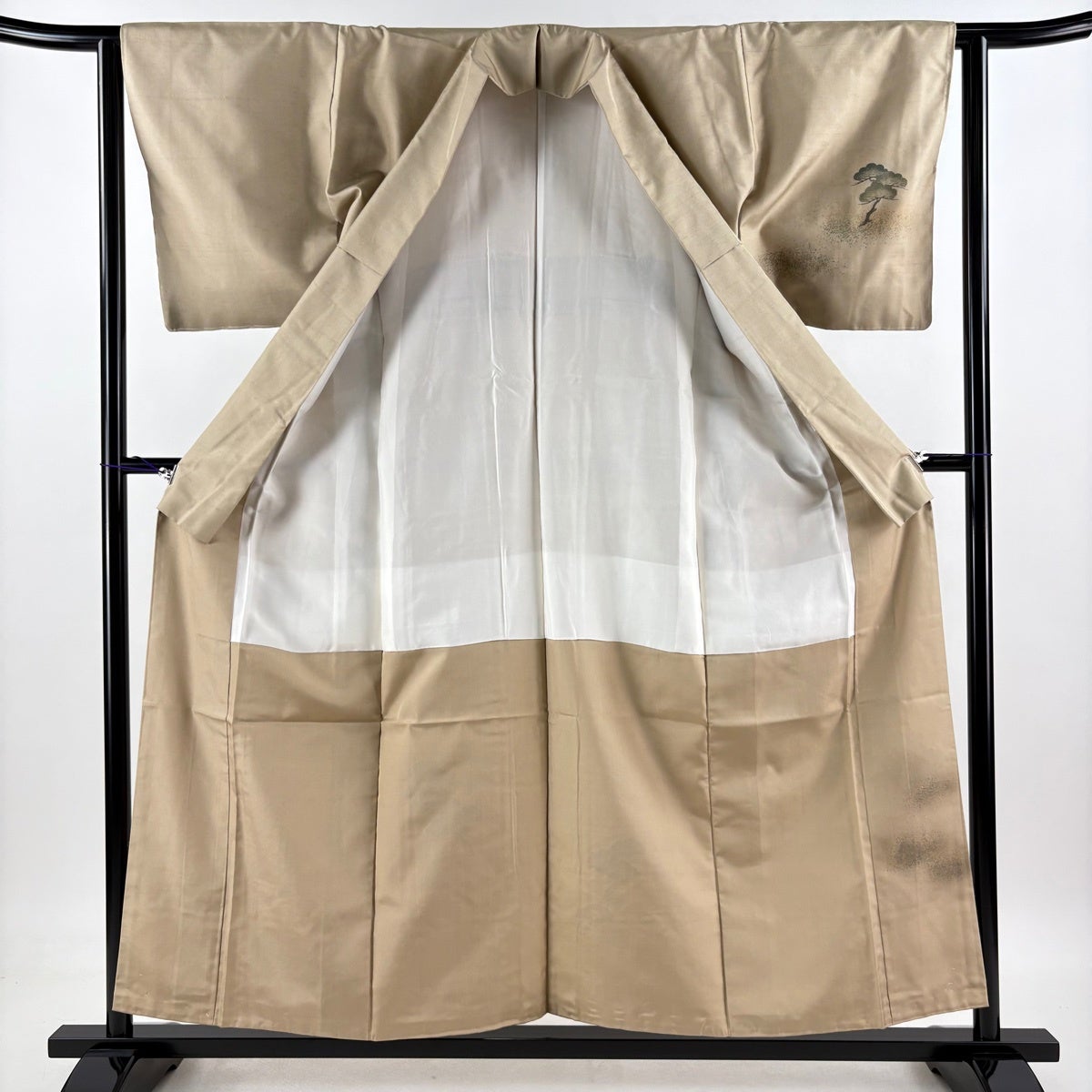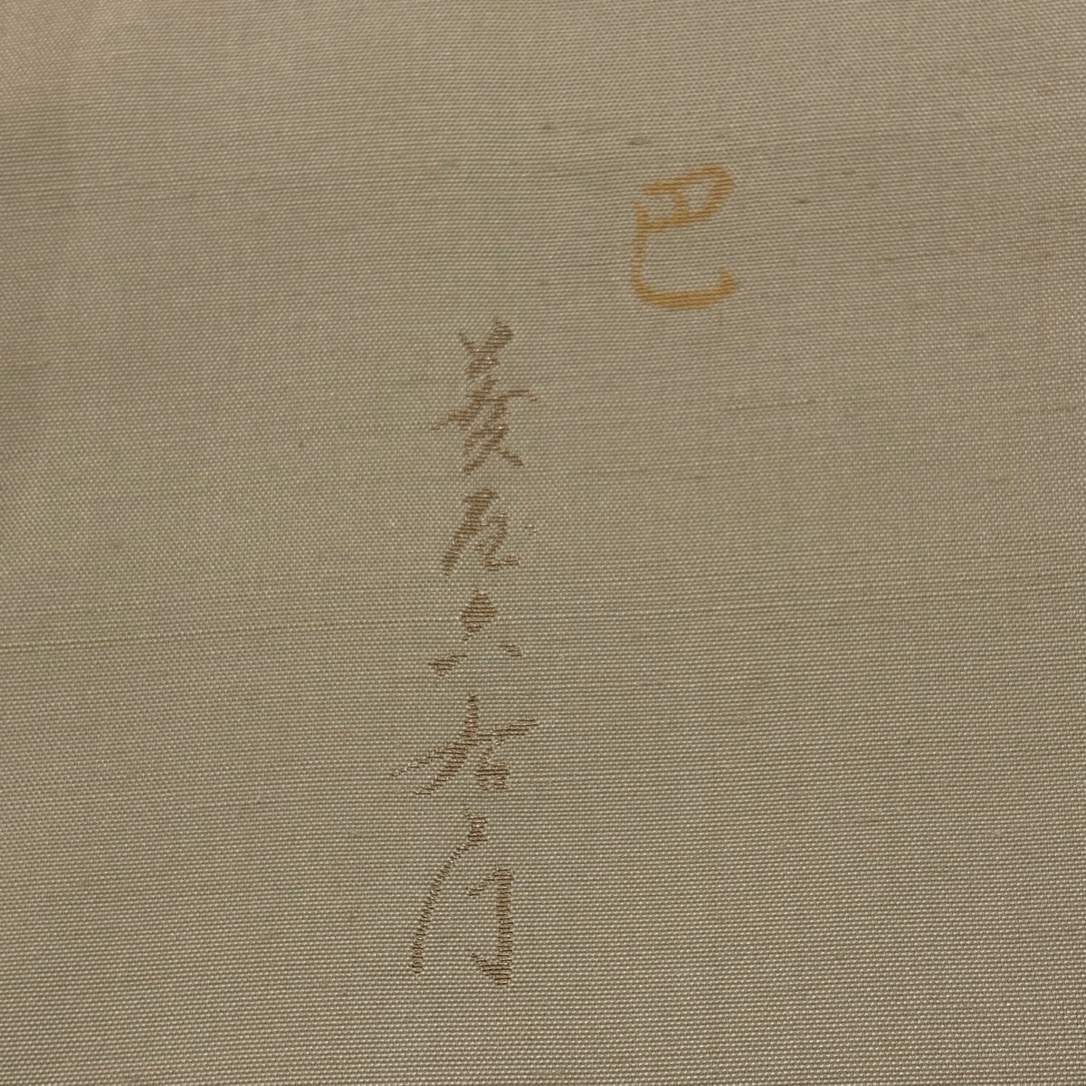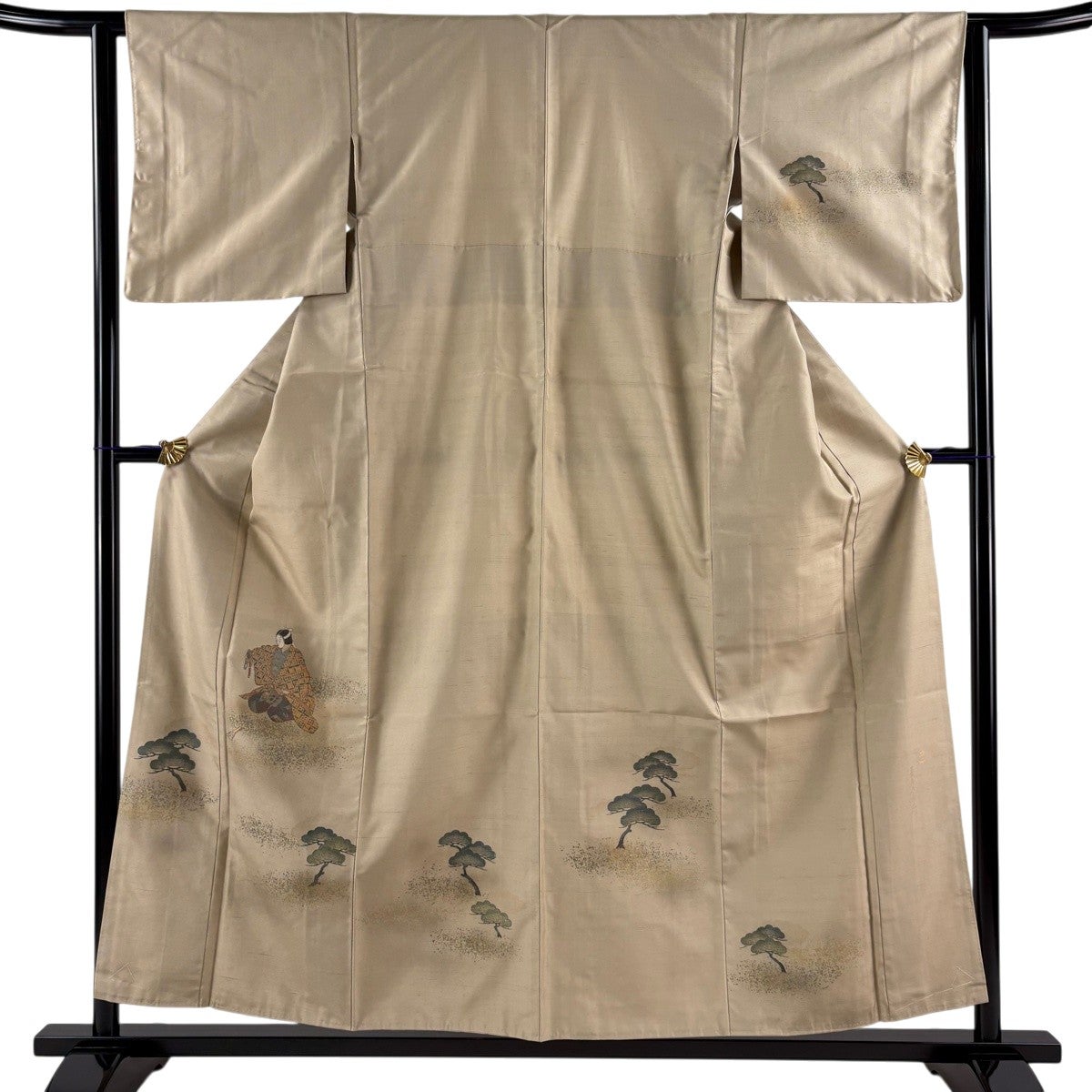付下げ 身丈156cm 裄丈62cm S 袷 紬地 菱屋録右ヱ門 落款あり 人物 松 金彩 薄茶色 正絹 優品