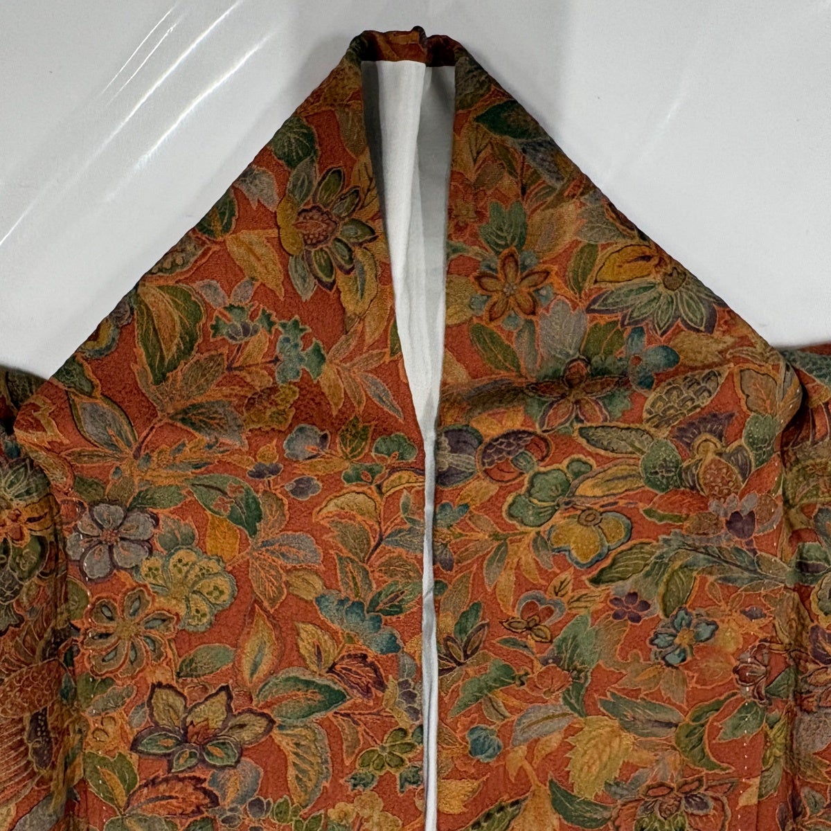 【美品】 付下げ 身丈154.5cm 裄丈62cm S 袷 鳥 草花 赤茶 正絹 優品