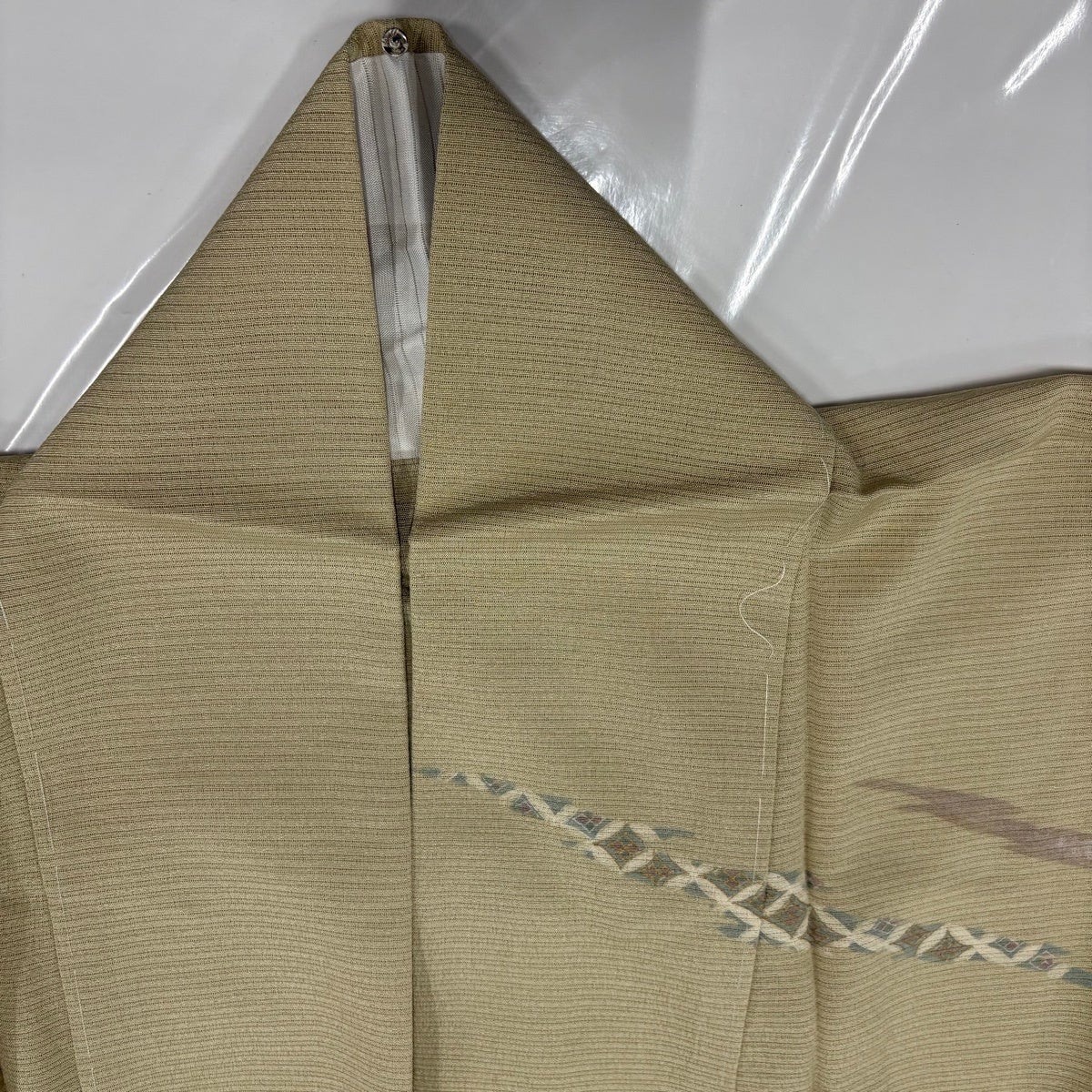 小紋 身丈160cm 裄丈63.5cm S 袷 竹縞 クリーム 正絹 優品