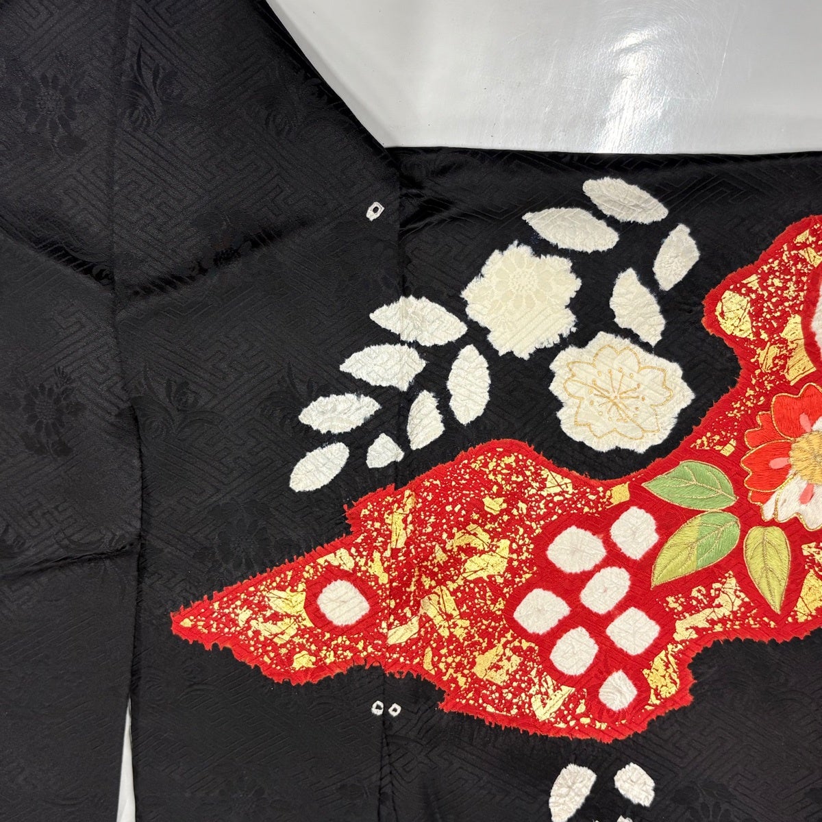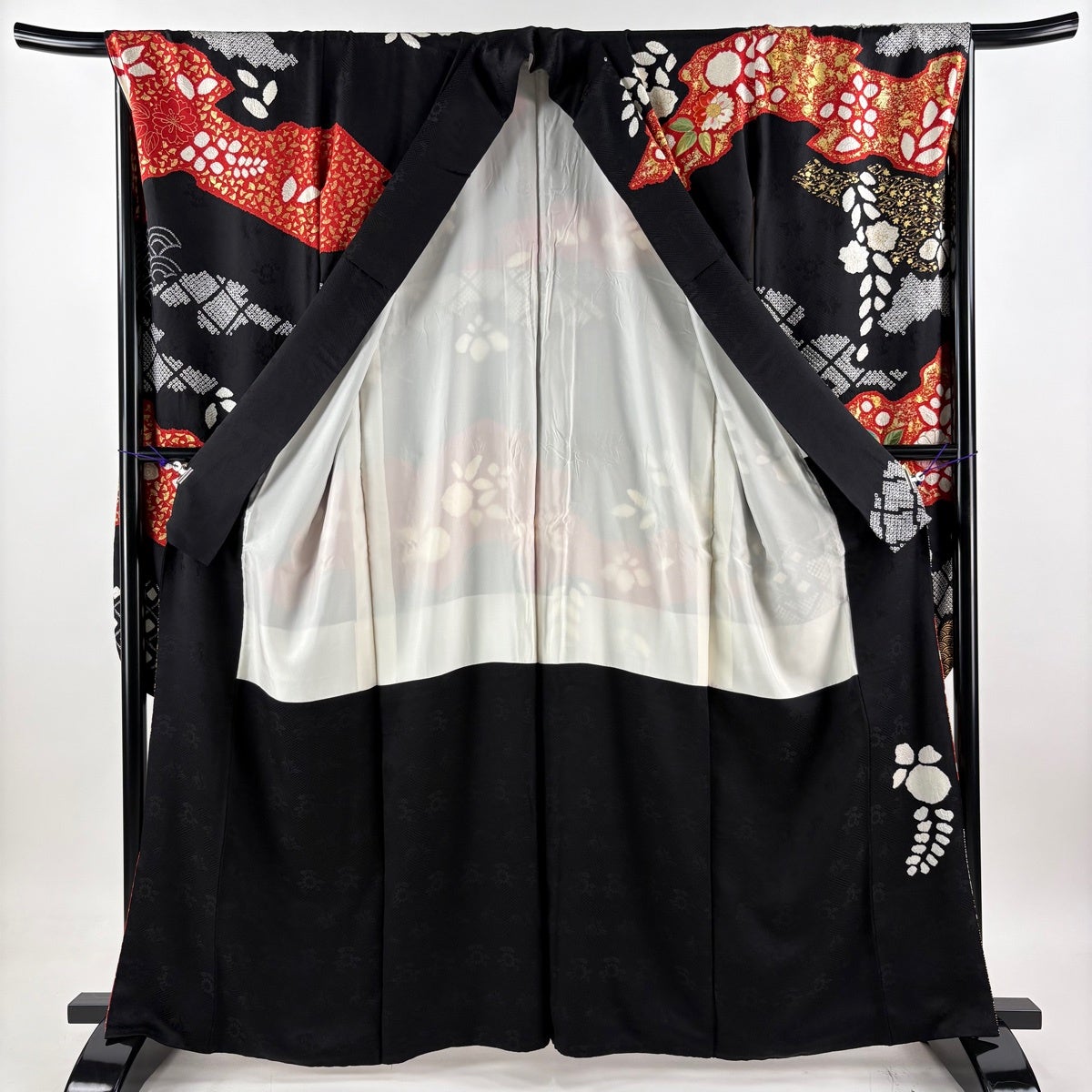 黒留袖 身丈161cm 裄丈65cm M 袷 落款あり 冊子 文箱 金銀彩 ぼかし 黒 正絹 優品