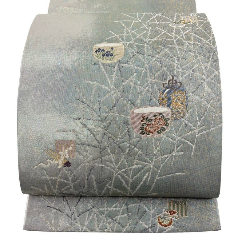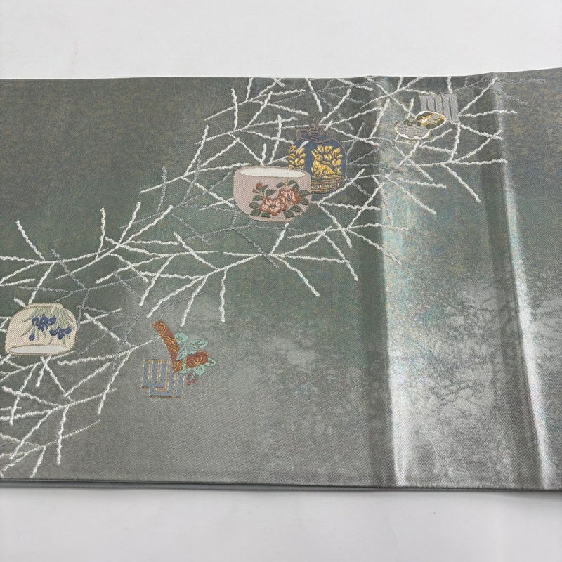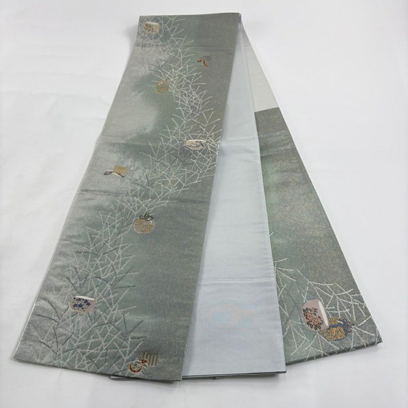 【袋帯】 灰色系 灰緑 秀品 A 帯丈436cm以上 7990-9980 美品 二万以下