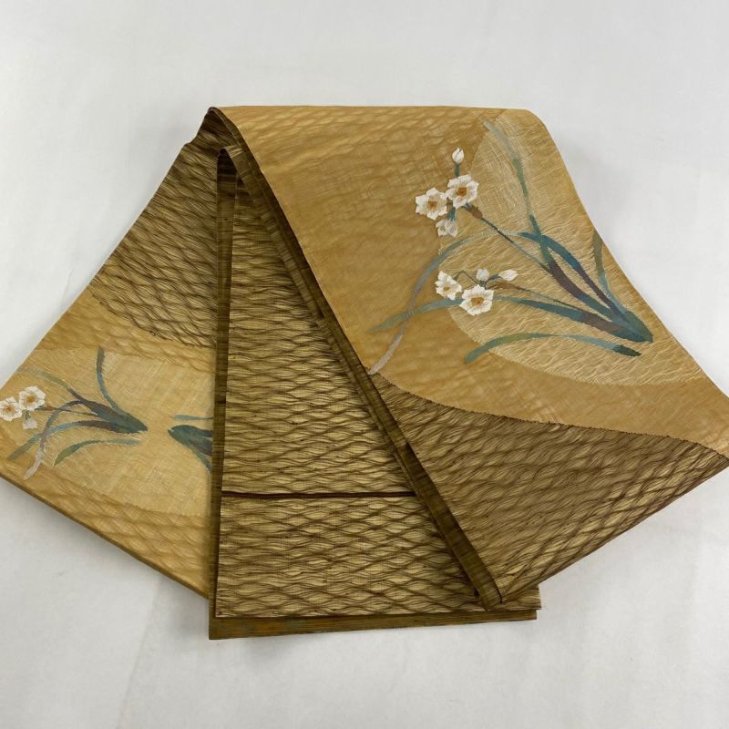 夏帯でございます。 セミフォーマルでお使いいただける袋帯でございます。 見る人に重たい印象を感じさせない女性ならではの、気品豊かな一品です。 リユース品としては目立った染み傷なく、大変状態の良いお品でございます。 沢山の商品の中からご覧いただき誠にありがとうございます。