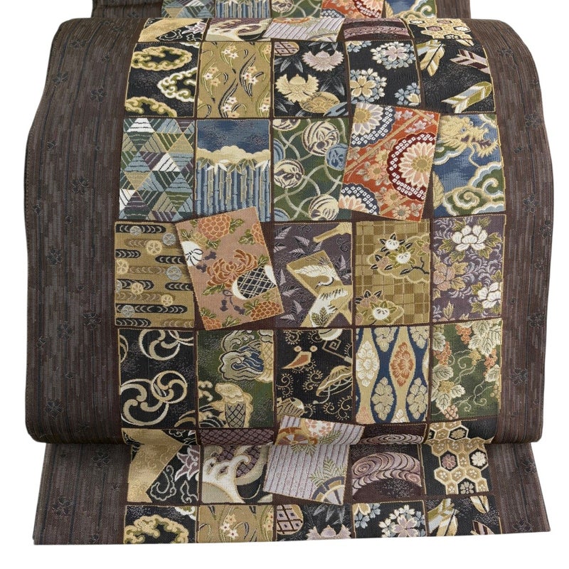 【袋帯】 茶系 焦茶色 名品 A 帯丈436cm以上 9990-29990 美品 二万以下