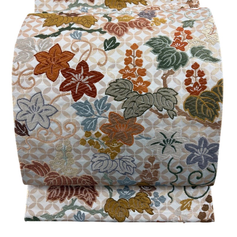 【袋帯】 白系 クリーム 名品 A 帯丈436cm以上 9990-29990 美品 二万以下