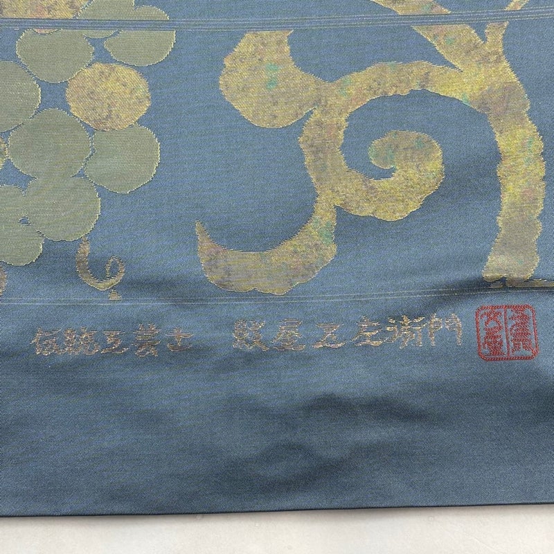 【袋帯】 灰色系 青灰色 名品 A 帯丈436cm以上 9990-29990 美品 二万以下