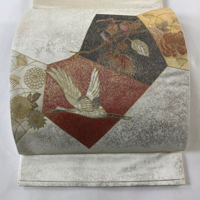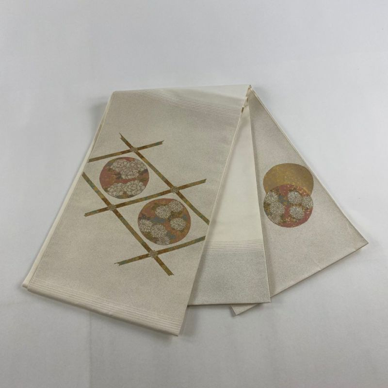 【袋帯】 白系 クリーム 名品 A 帯丈436cm以上 9990-29990 美品 二万以下