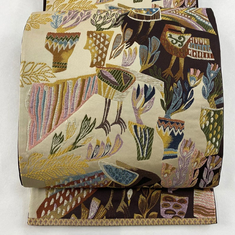 【袋帯】 白系 ベージュ 名品 A 帯丈426cm~435cm 9990-29990 美品 二万以下
