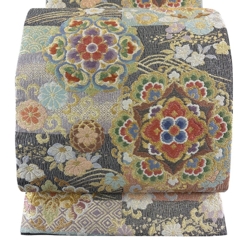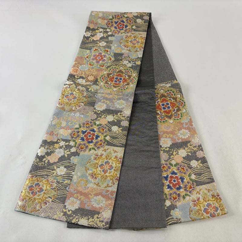 【袋帯】 灰色系 黒灰 名品 A 帯丈436cm以上 9990-29990 美品 二万以下