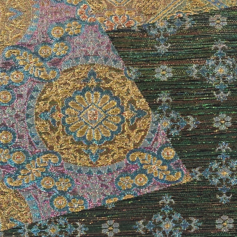 京都西陣、染と織の名門「じゅらく」謹製による作品でございます。 おめでたい席に相応しい意匠の袋帯でございます。 格式高いお席にもお使いいただけますので、お見逃しのないようお願いいたします。 締め跡がございます。 中無地所々に汚れがございます。 裏地の手先付近に糸つれがございます。 リユース品としては目立った染み傷なく、状態の良いお品でございます。 ※なお、厳しく商品の状態確認を行っておりますが、記載の汚れ以外にも見落とし箇所がある可能性がある旨ご了承いただけますと幸いです。 沢山の商品の中からご覧いただき誠にありがとうございます。