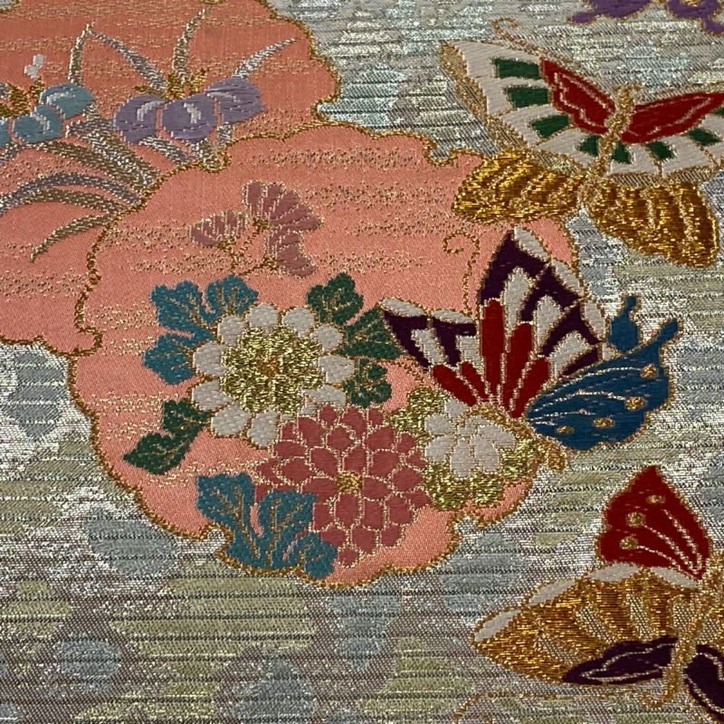セミフォーマルでお使いいただける袋帯でございます。 見る人に重たい印象を感じさせない女性ならではの、気品豊かな一品です。 締め跡がございます。 リユース品としては目立った染み傷なく、大変状態の良いお品でございます。 沢山の商品の中からご覧いただき誠にありがとうございます。