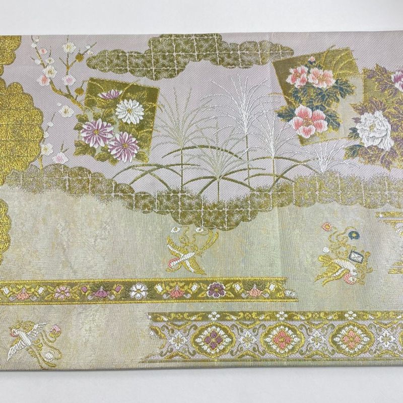 【着物ランク】名品 【素材】正絹 【帯丈】約446cm 【帯幅】約30.5cm 【帯仕立て】仕立て上がり 【状態ランク】ランクB 【帯着用シーン】フォーマル(留袖・振袖・訪問着)