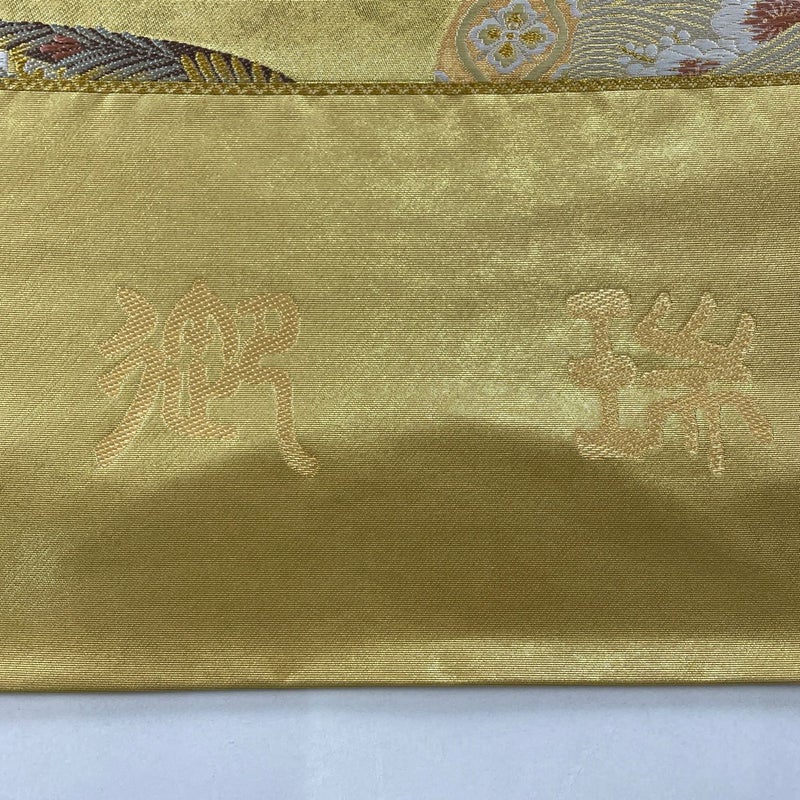 おめでたい席に相応しい意匠の袋帯でございます。 格式高いお席にもお使いいただけますので、お見逃しのないようお願いいたします。 帯芯が入っておりません。 リユース品としては目立った染み傷なく、大変状態の良いお品でございます。 沢山の商品の中からご覧いただき誠にありがとうございます。