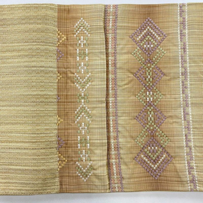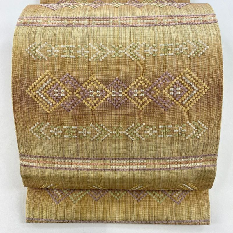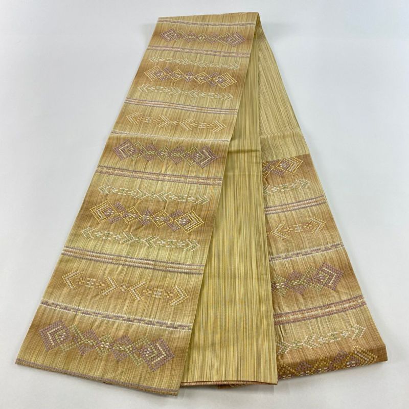 普段使いでお使いいただける袋帯でございます。 カジュアルな装いに合わせてお使いください。 手先に生地のヨレがございます。 リユース品としては目立った染み傷なく、大変状態の良いお品でございます。 沢山の商品の中からご覧いただき誠にありがとうございます。