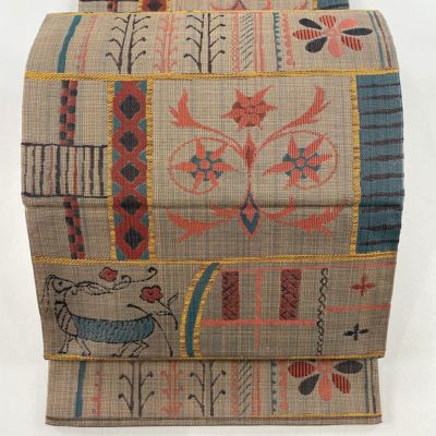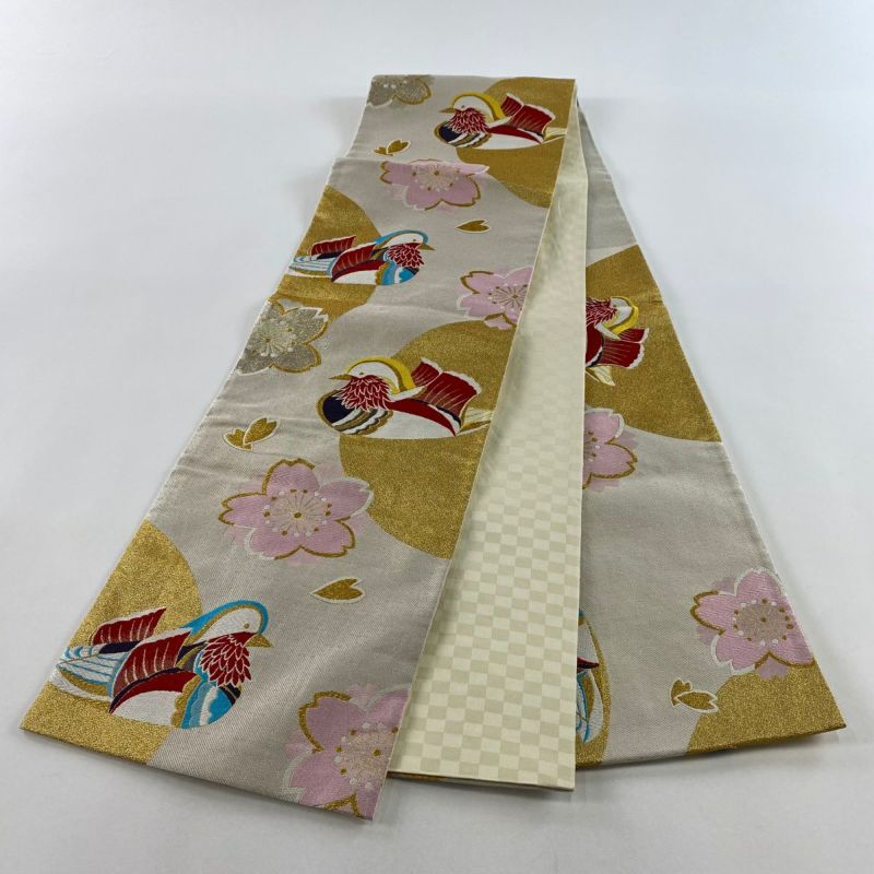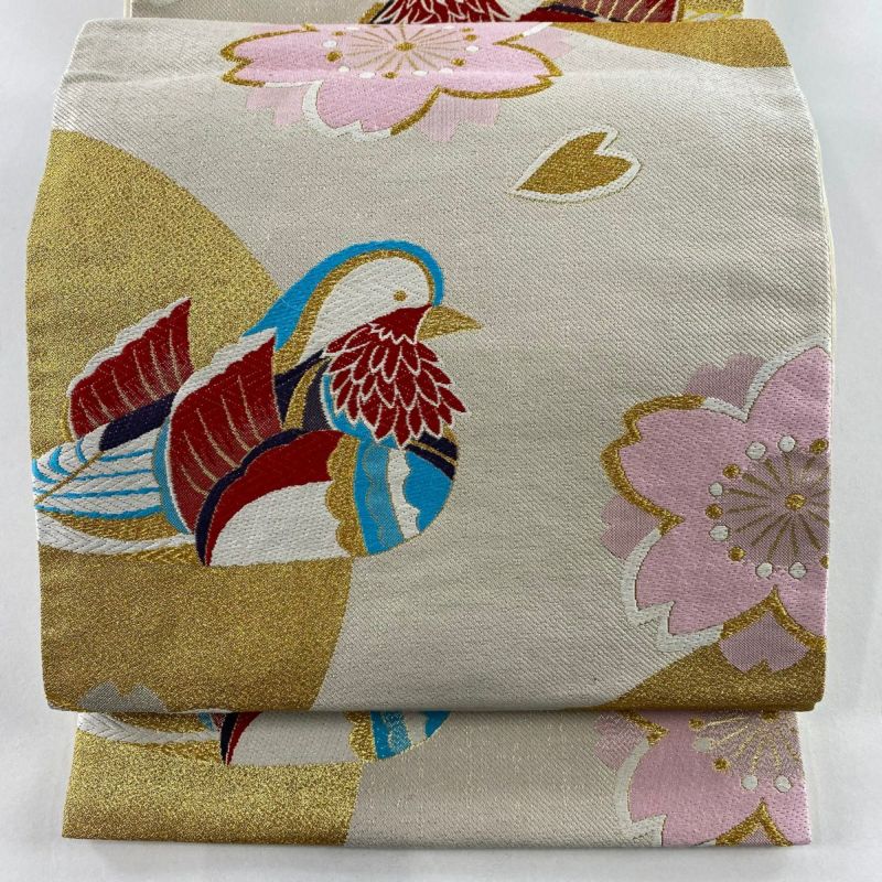 【袋帯】 白系 ベージュ 秀品 A 帯丈436cm以上 7990-9980 美品 二万以下