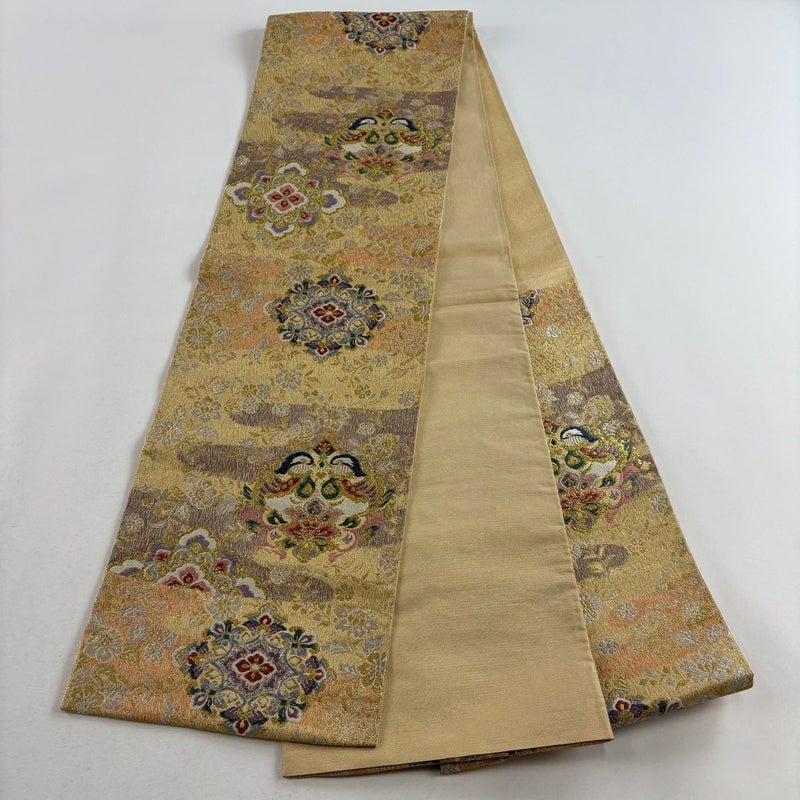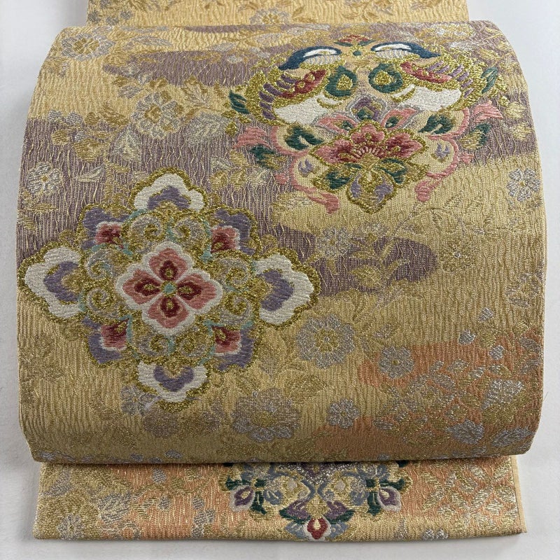 【袋帯】 白系 ベージュ 名品 A 帯丈426cm~435cm 4000-7980 美品 二万以下