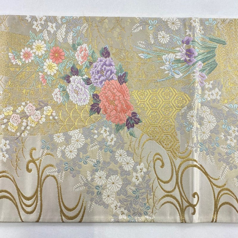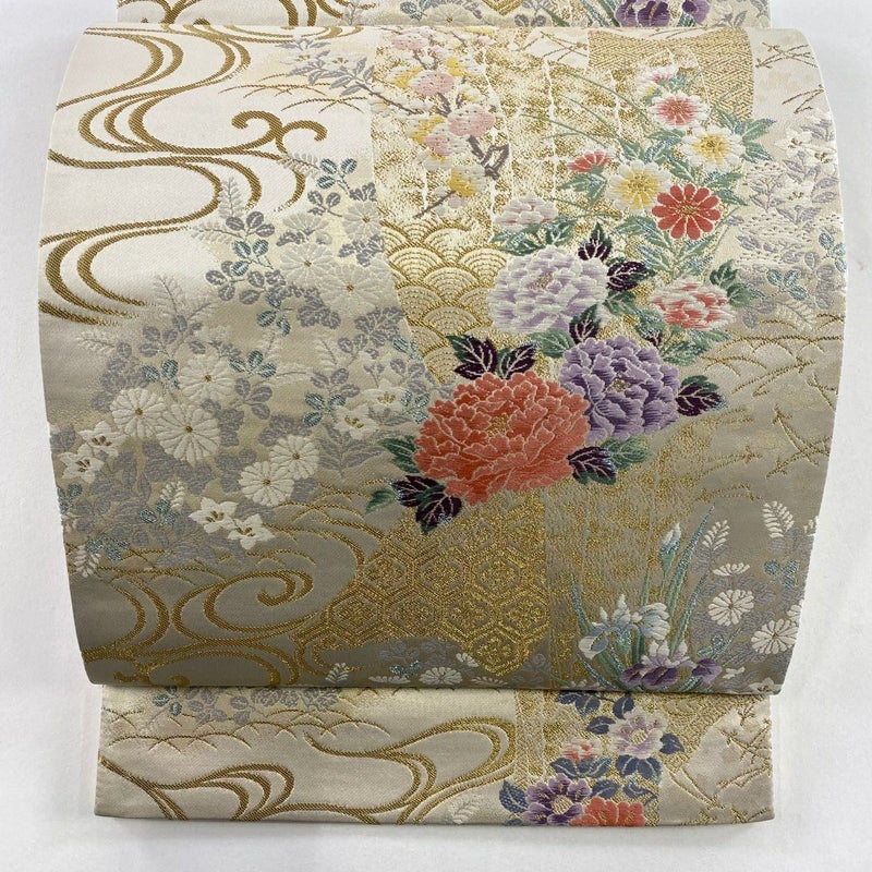 【袋帯】 白系 クリーム 秀品 A 帯丈426cm~435cm 7990-9980 美品 二万以下