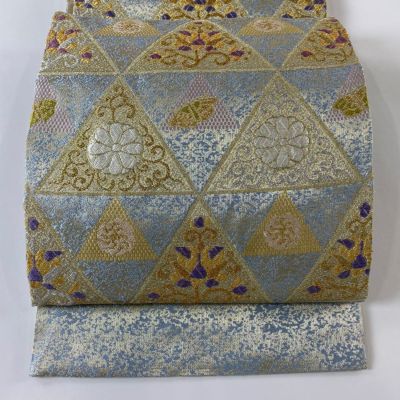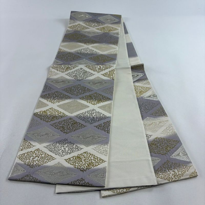 【袋帯】 灰色系 灰紫 名品 A 帯丈436cm以上 -3980 美品 二万以下