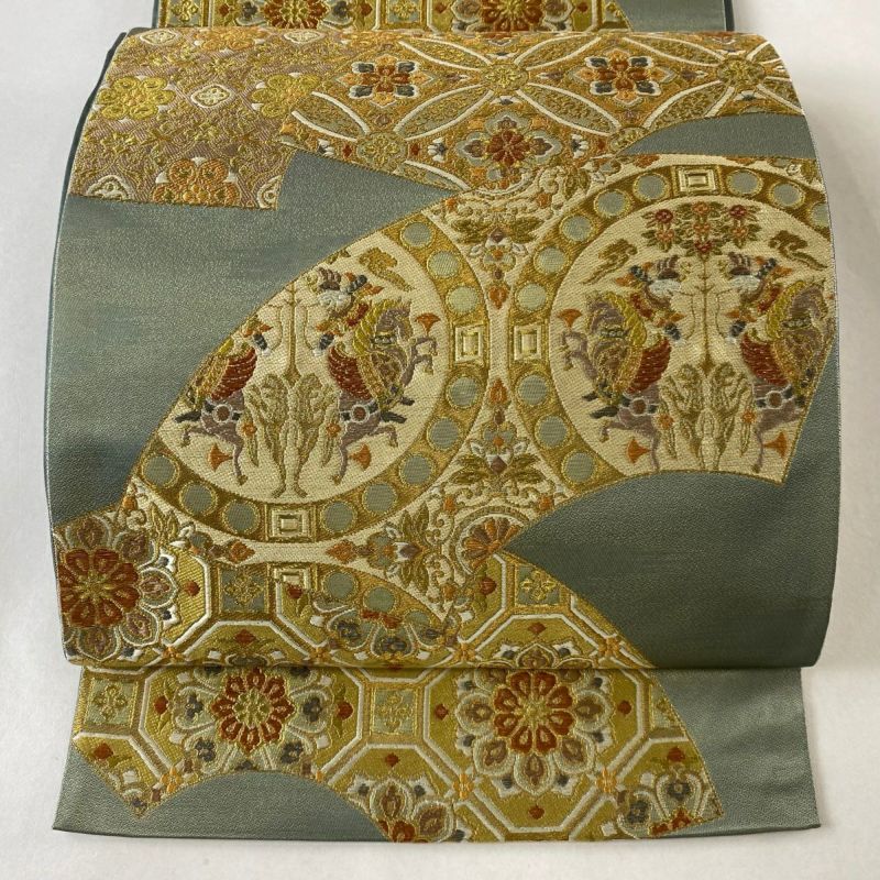 【袋帯】 灰色系 灰緑 名品 A 帯丈426cm~435cm 9990-29990 美品 二万以下