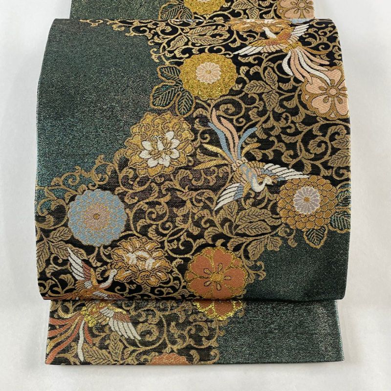 【袋帯】 緑系 深緑 秀品 A 帯丈426cm~435cm 7990-9980 美品 二万以下