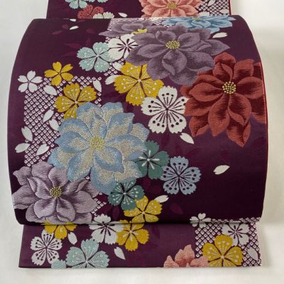 軍配マークと三本線が特徴の「川島織物」謹製の作品です。 おめでたい席に相応しい意匠の袋帯でございます。 格式高いお席にもお使いいただけますので、お見逃しのないようお願いいたします。 締め跡がございます。 中無地締め跡沿いに薄汚れ、前柄お太鼓間に糸ゆるみがございます。 裏地に生地のヨレがございます。 リユース品としては目立った染み傷なく、大変状態の良いお品でございます。 沢山の商品の中からご覧いただき誠にありがとうございます。