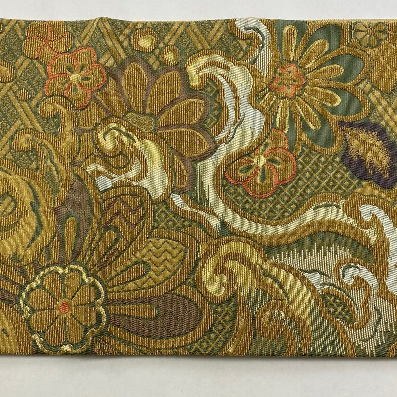 【袋帯】 灰色系 灰緑 名品 A 帯丈436cm以上 4000-7980 美品 二万以下