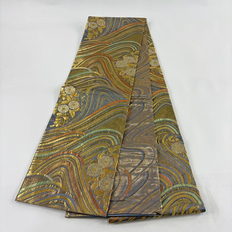 【袋帯】 灰色系 青灰色 秀品 A 帯丈426cm~435cm -3980 美品 二万以下