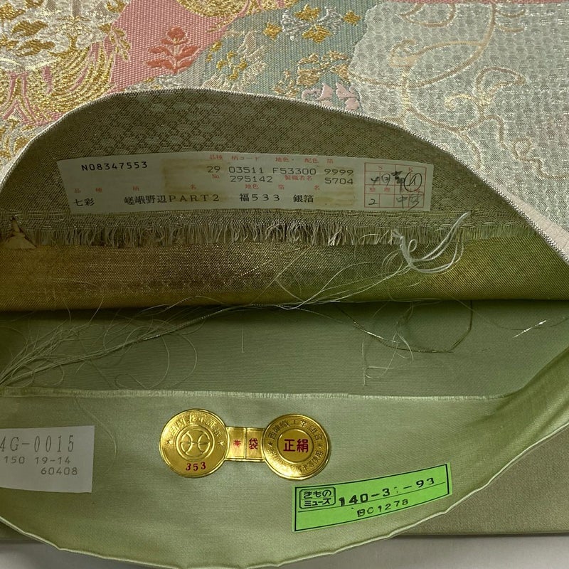 【袋帯】 金・銀系 銀色 名品 A 帯丈436cm以上 4000-7980 美品 二万以下