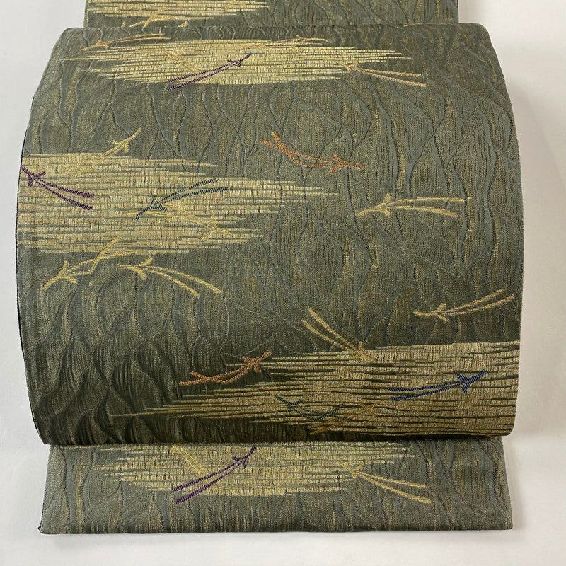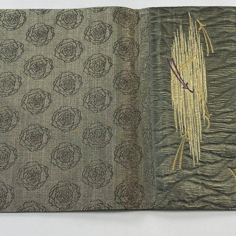 【袋帯】 灰色系 灰緑 名品 A 帯丈436cm以上 4000-7980 美品 二万以下