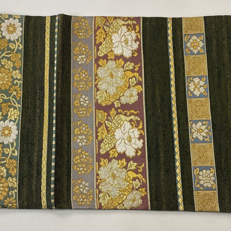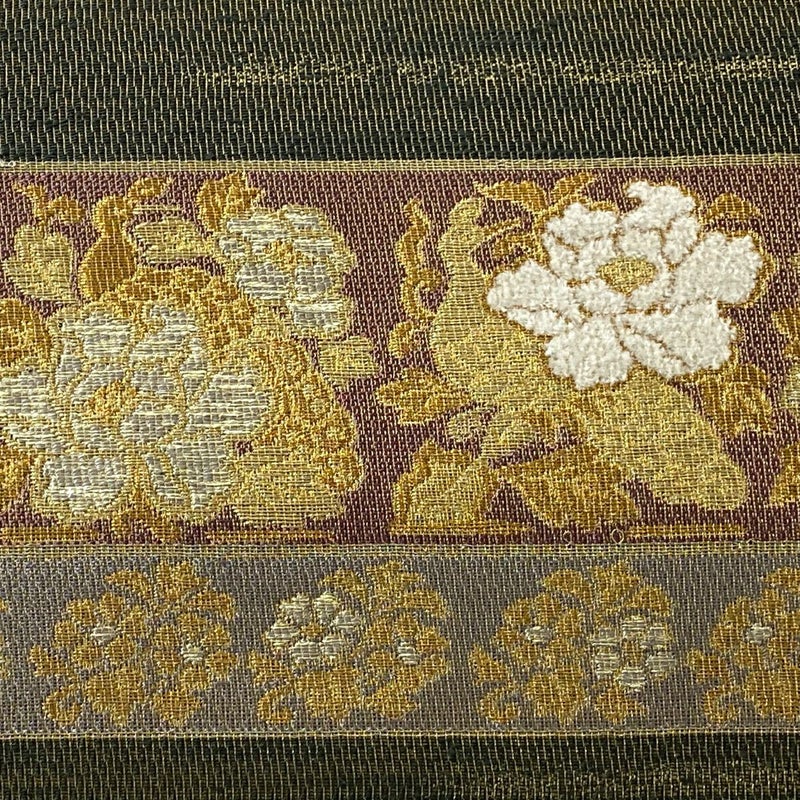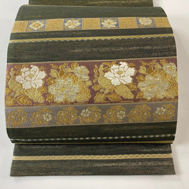 【袋帯】 茶系 茶緑色 名品 A 帯丈436cm以上 4000-7980 美品 二万以下
