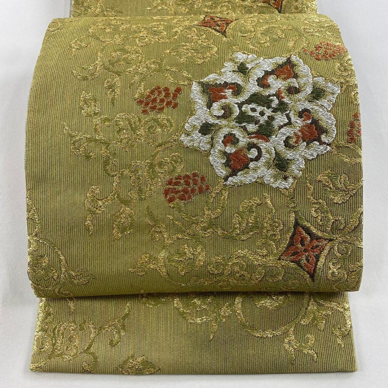 【袋帯】 緑系 抹茶色 名品 A 帯丈436cm以上 4000-7980 美品 二万以下