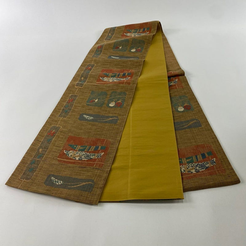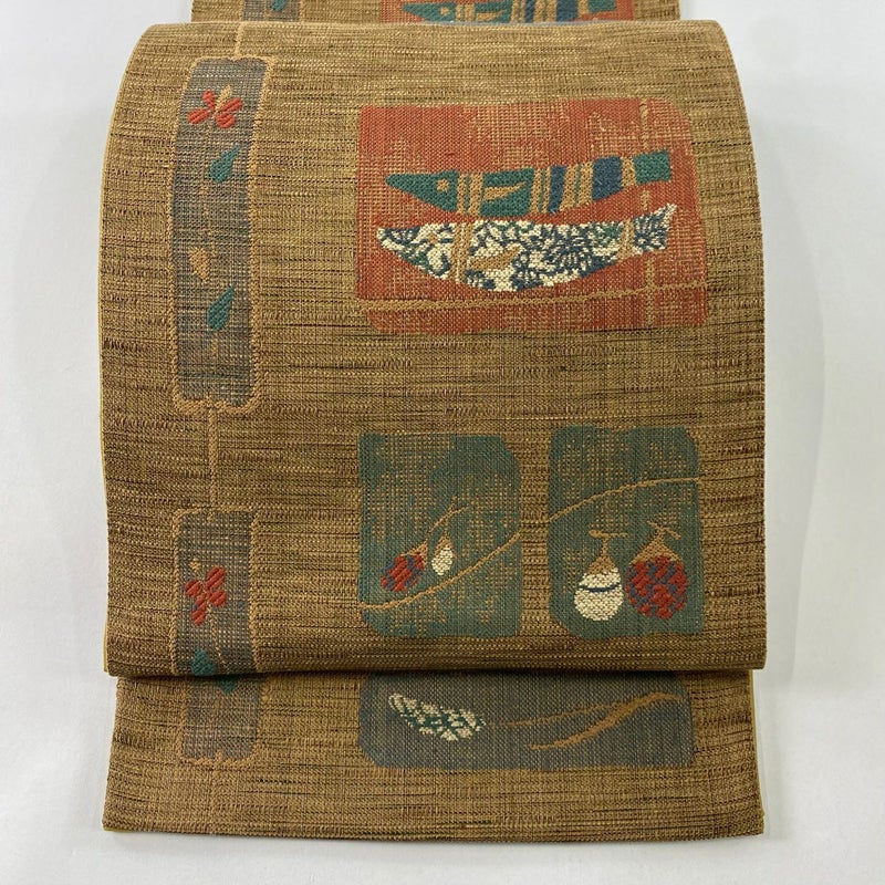 【袋帯】 茶系 薄茶色 秀品 A 帯丈426cm~435cm -3980 美品 二万以下