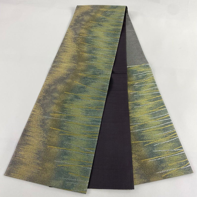 【袋帯】 灰色系 灰緑 秀品 A 帯丈436cm以上 -3980 美品 二万以下