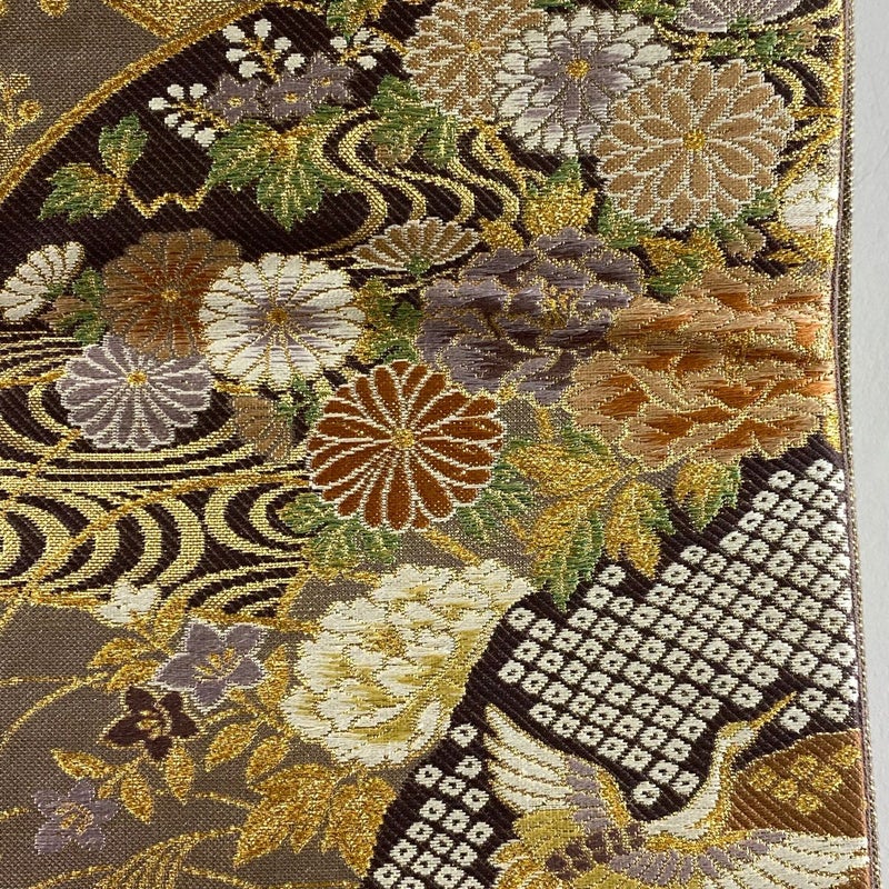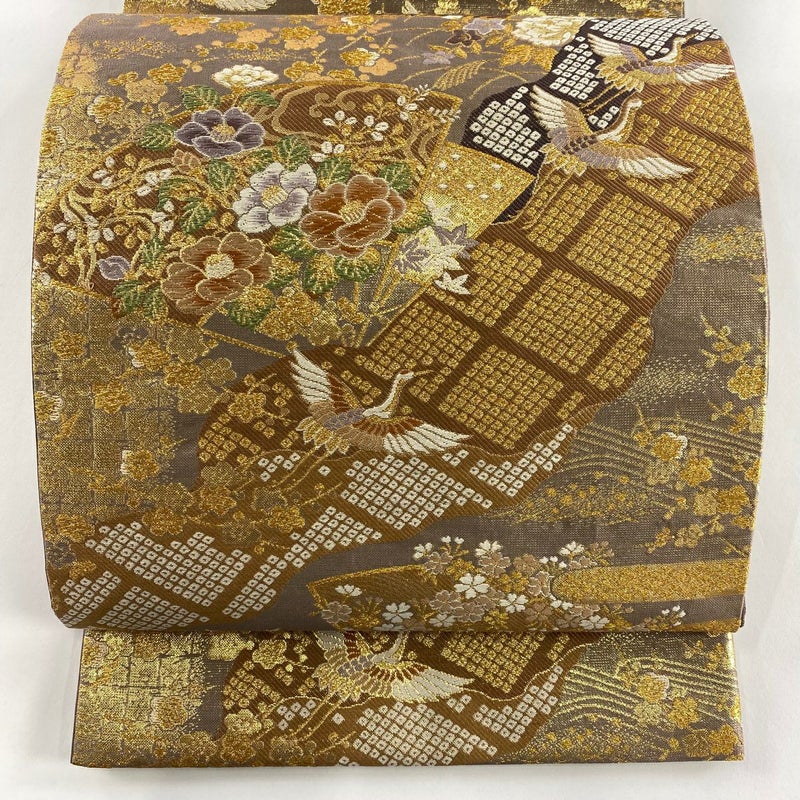 おめでたい席に相応しい意匠の袋帯でございます。 格式高いお席にもお使いいただけますので、お見逃しのないようお願いいたします。 お太鼓など所々に保管によるシワがございます。 リユース品としては良い状態で、まだまだご活用頂けると思われます。 ※なお、厳しく商品の状態確認を行っておりますが、記載の汚れ以外にも見落とし箇所がある可能性がある旨ご了承いただけますと幸いです。 沢山の商品の中からご覧いただき誠にありがとうございます。 【PR2】