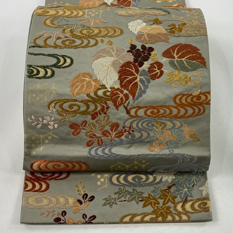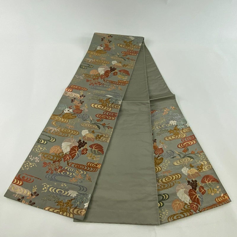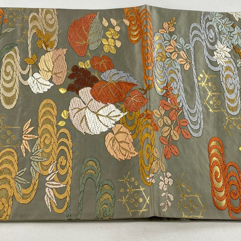 【袋帯】 灰色系 灰緑 秀品 B 帯丈436cm以上 -3980 二万以下