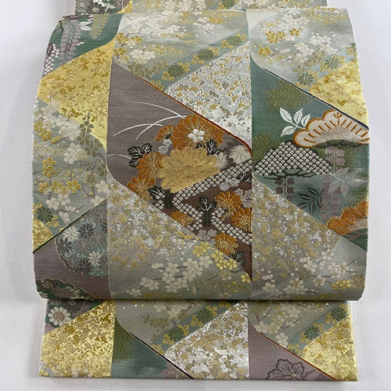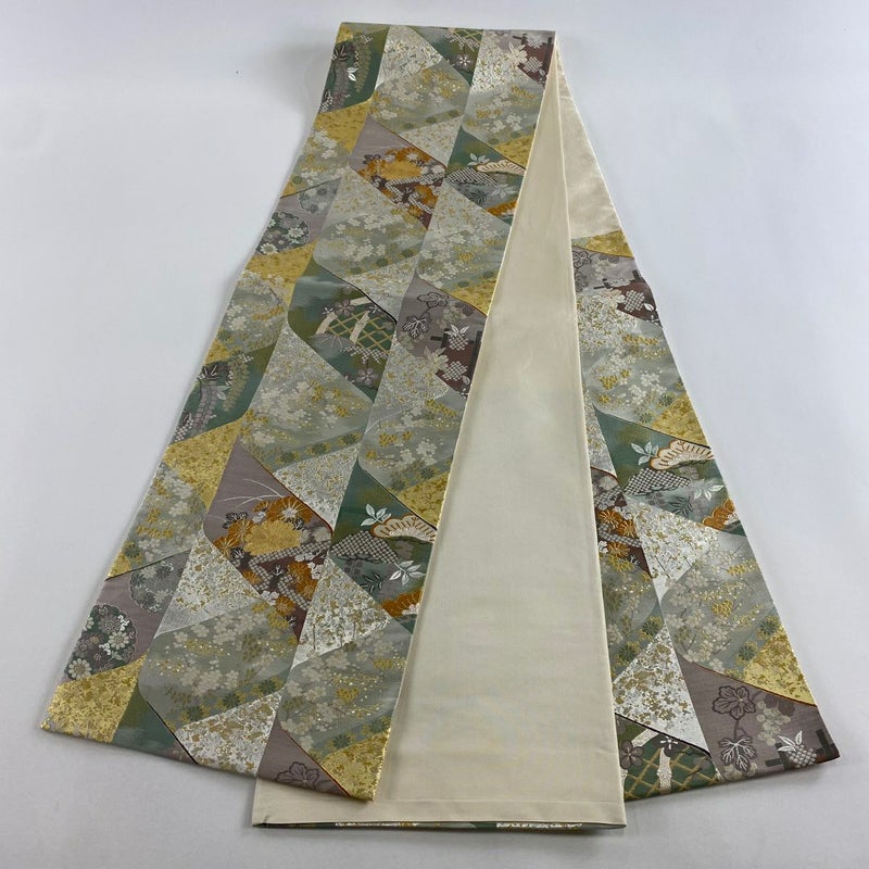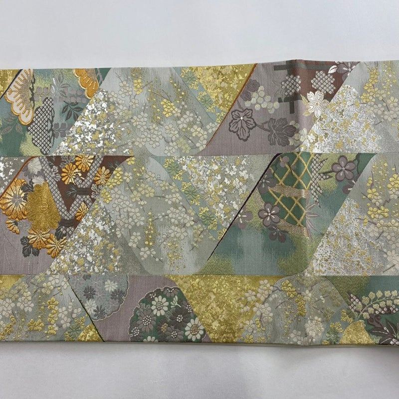 【袋帯】 緑系 薄緑 秀品 A 帯丈436cm以上 -3980 美品 二万以下