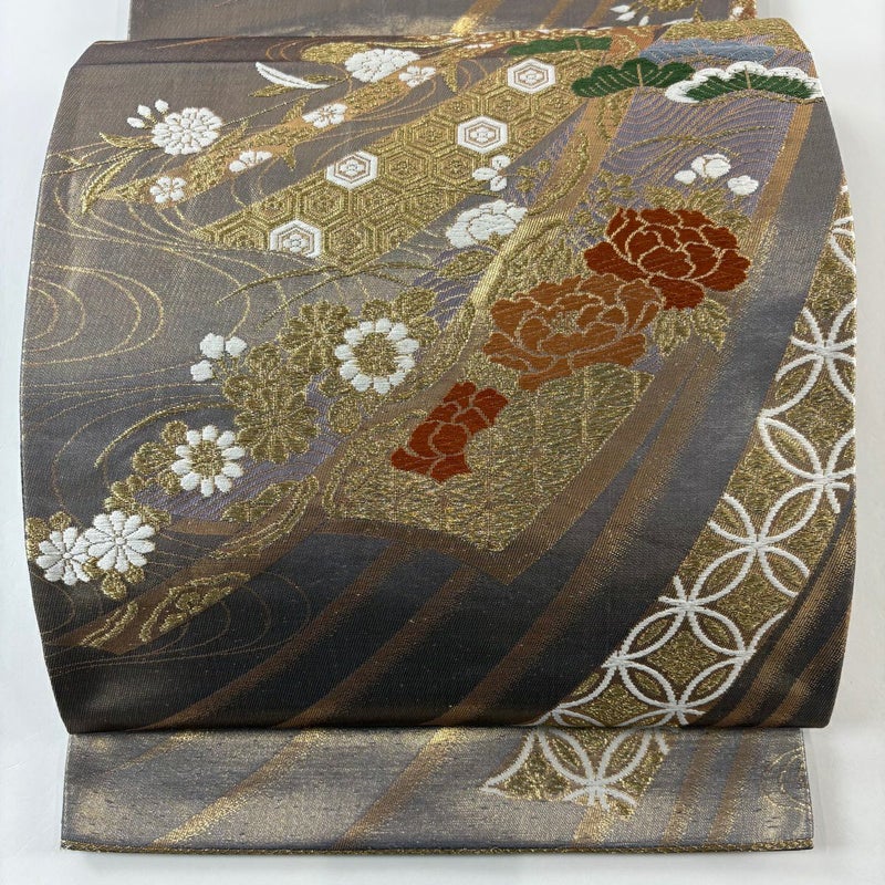 【袋帯】 灰色系 灰紫 秀品 A 帯丈401cm~425cm -3980 美品 二万以下