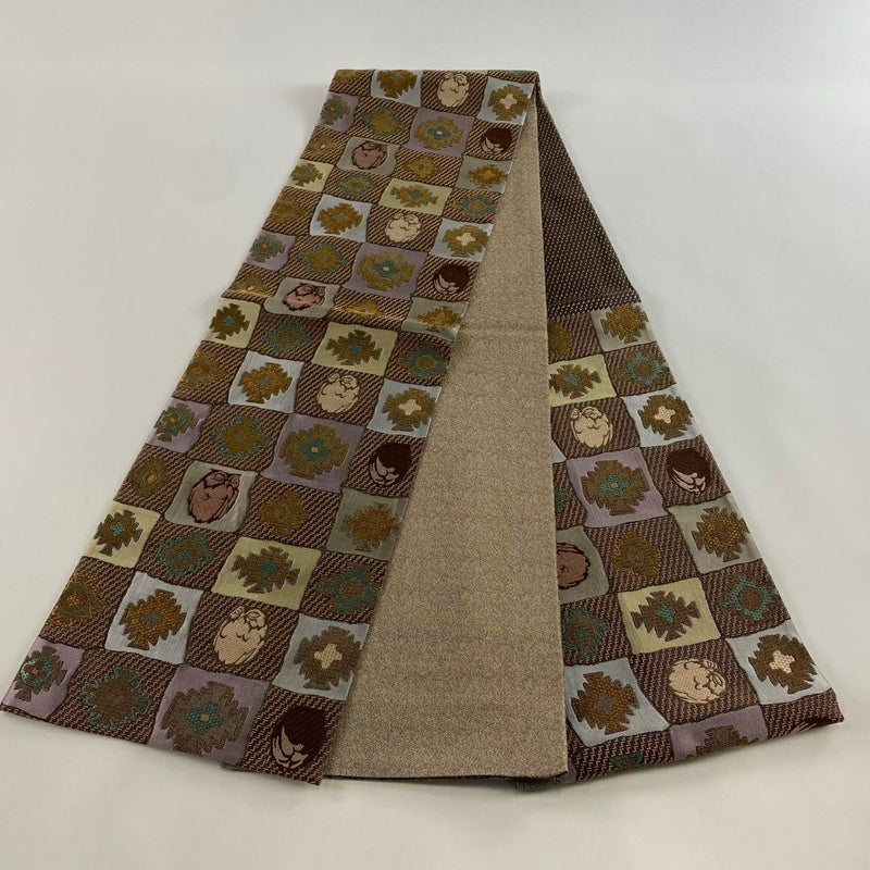 セミフォーマルでお使いいただける袋帯でございます。 見る人に重たい印象を感じさせない女性ならではの、気品豊かな一品です。 締め跡がございます。 お太鼓垂先間に糸ゆるみがございます。 リユース品としては目立った染み傷なく、状態の良いお品でございます。 ※なお、厳しく商品の状態確認を行っておりますが、記載の汚れ以外にも見落とし箇所がある可能性がある旨ご了承いただけますと幸いです。 沢山の商品の中からご覧いただき誠にありがとうございます。 【PR2】