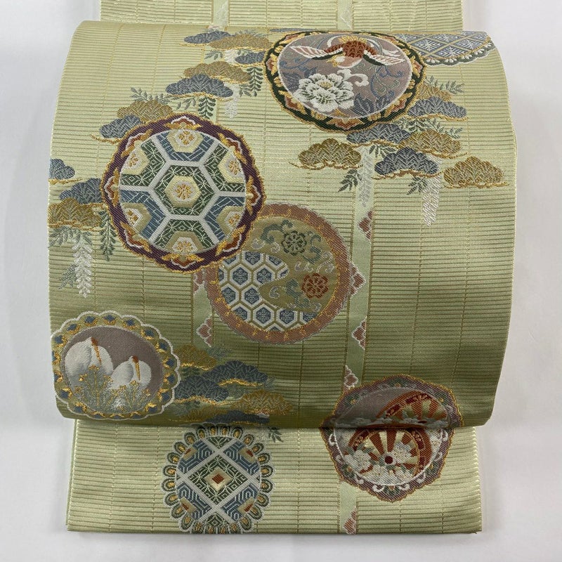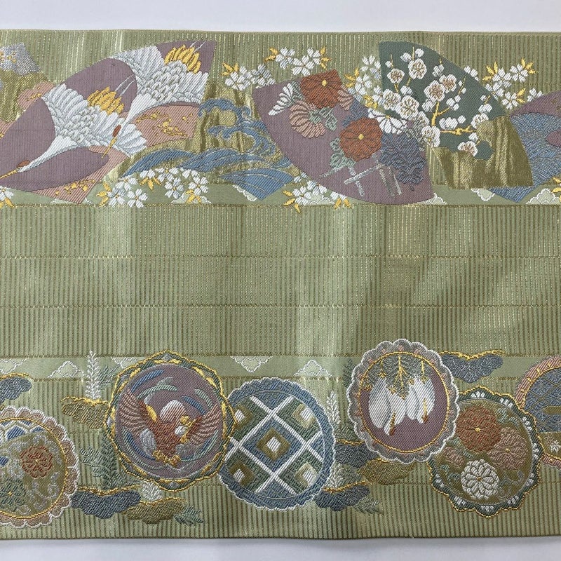 【袋帯】 緑系 薄緑 秀品 A 帯丈426cm~435cm -3980 美品 二万以下