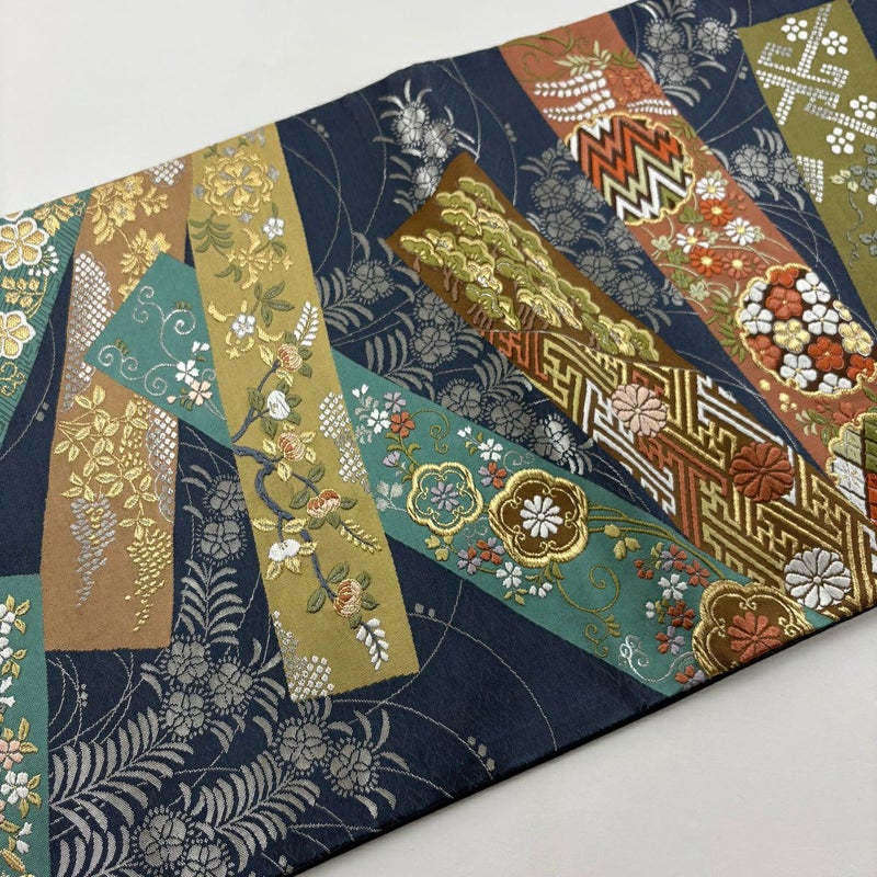 【袋帯】 青系 藍色 秀品 B 帯丈436cm以上 -3980 二万以下