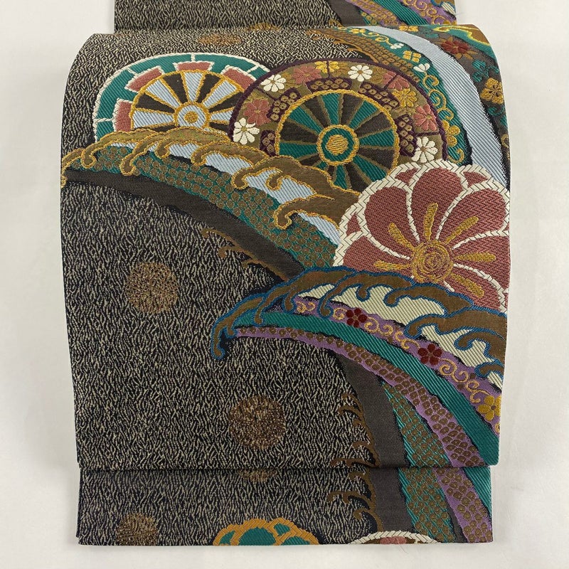 【袋帯】 茶系 焦茶色 秀品 A 帯丈436cm以上 -3980 美品 二万以下