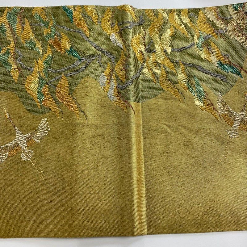 おめでたい席に相応しい意匠の袋帯でございます。 格式高いお席にもお使いいただけますので、お見逃しのないようお願いいたします。 締め跡がございます。 お太鼓垂先間と前柄お太鼓間に変色がございます。 リユース品としては良い状態で、まだまだご活用頂けると思われます。 ※なお、厳しく商品の状態確認を行っておりますが、記載の汚れ以外にも見落とし箇所がある可能性がある旨ご了承いただけますと幸いです。 沢山の商品の中からご覧いただき誠にありがとうございます。