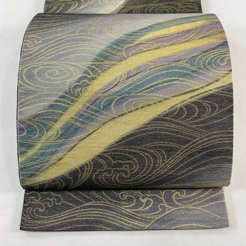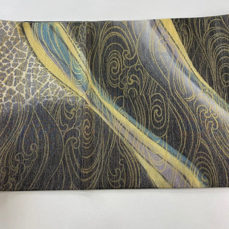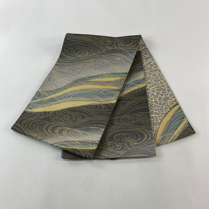 【袋帯】 灰色系 灰緑 名品 A 帯丈436cm以上 4000-7980 美品 二万以下