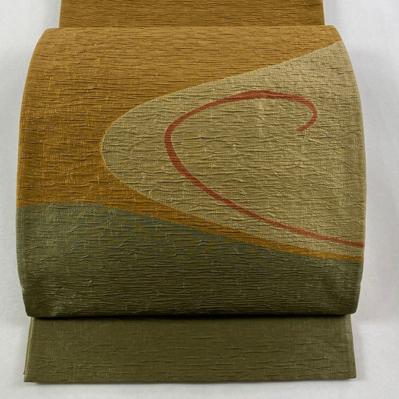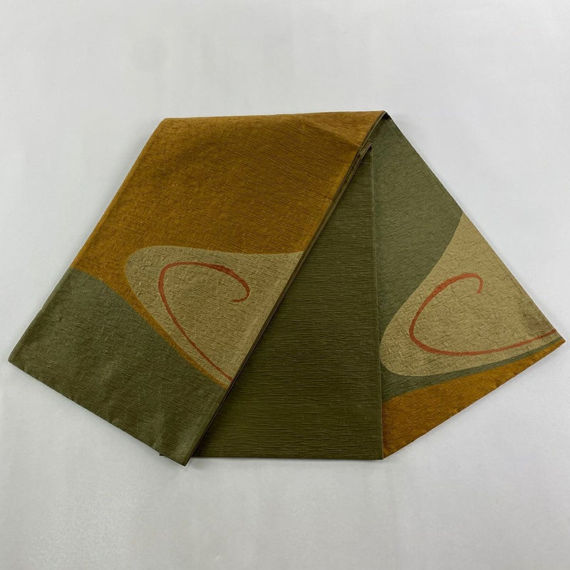 【袋帯】 茶系 茶緑色 秀品 A 帯丈426cm~435cm -3980 美品 二万以下