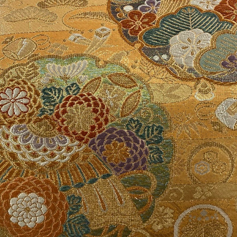 おめでたい席に相応しい意匠の袋帯でございます。 格式高いお席にもお使いいただけますので、お見逃しのないようお願いいたします。 締め跡がございます。 リユース品としては目立った染み傷なく、状態の良いお品でございます。 ※なお、厳しく商品の状態確認を行っておりますが、記載の汚れ以外にも見落とし箇所がある可能性がある旨ご了承いただけますと幸いです。 沢山の商品の中からご覧いただき誠にありがとうございます。 【PR2】