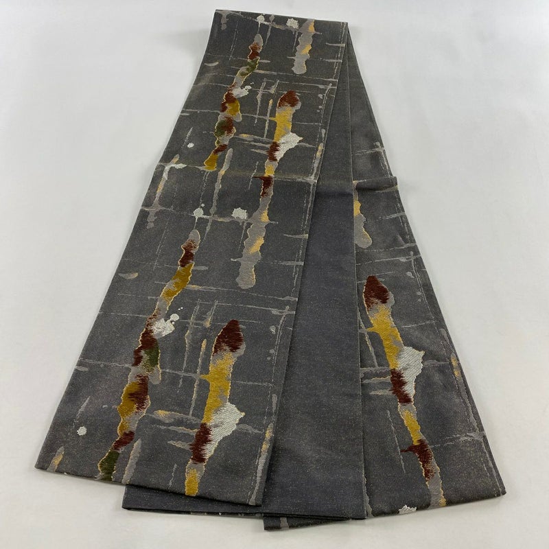 【袋帯】 灰色系 黒灰 名品 A 帯丈436cm以上 9990-29990 美品 二万以下