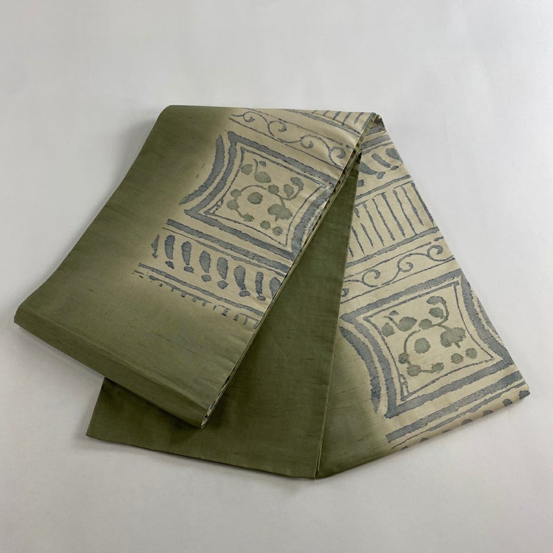 【袋帯】 灰色系 灰緑 名品 B 帯丈426cm~435cm 4000-7980 二万以下