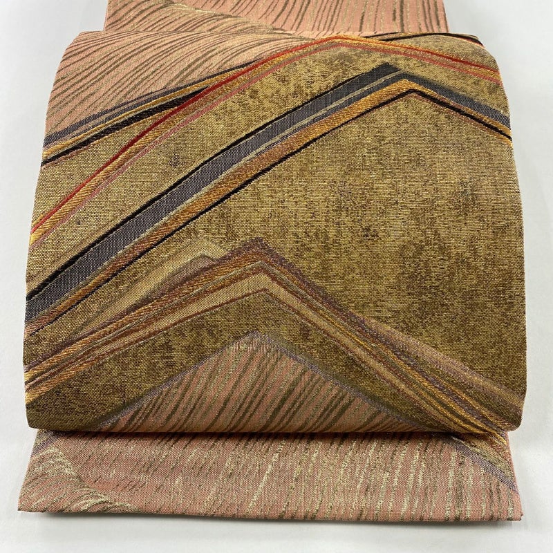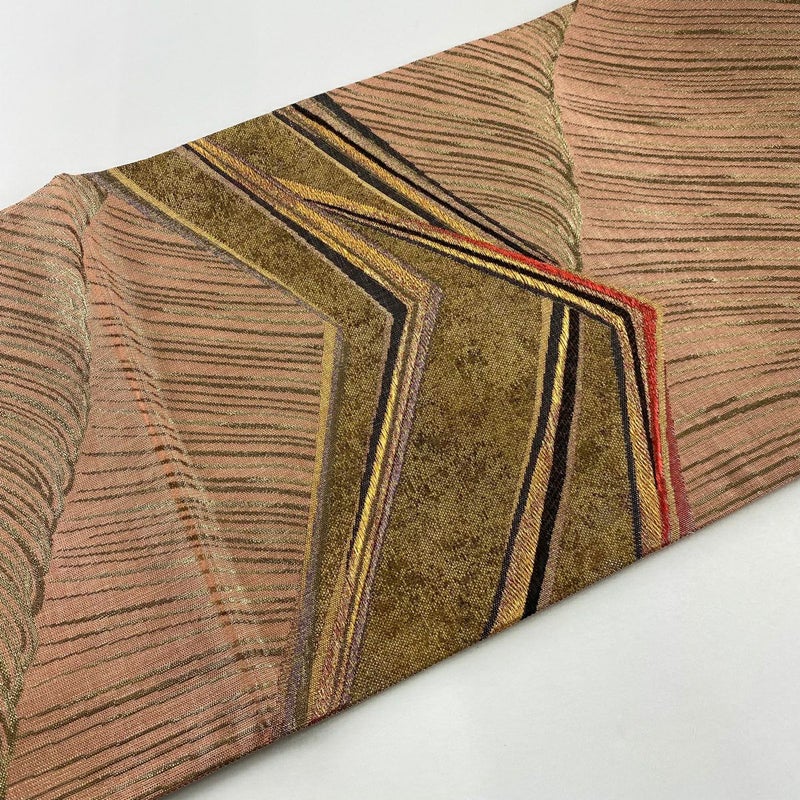 【袋帯】 赤系 ピンクベージュ 秀品 B 帯丈426cm~435cm -3980 二万以下